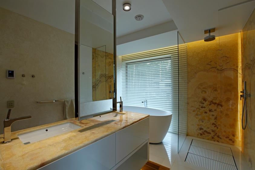 Использование мраморного оникса в отделке ванной комнаты - прекрасный способ создать запоминающийся и цельный интерьер. Этот самобытный камень раскрывает огромный диапазон оригинальных и эргономичных решений. Например, подсвеченный изнутри оникс решает несколько задач - это и потрясающий декор, и долговечная отделка, и источник освещения.