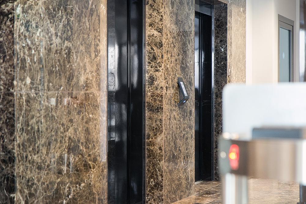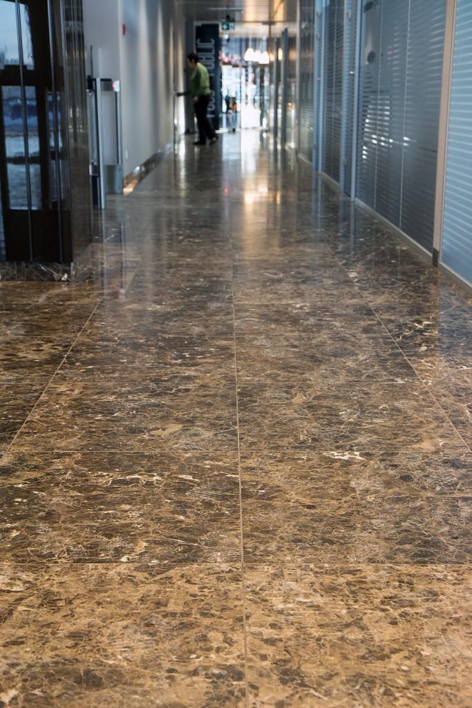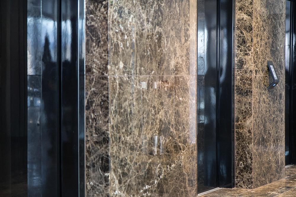 Отделка интерьера бизнес-центра мрамором Emperador Dark