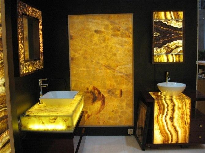 Мрамором облицованы стены и постамент, обрамляющий ванну.
