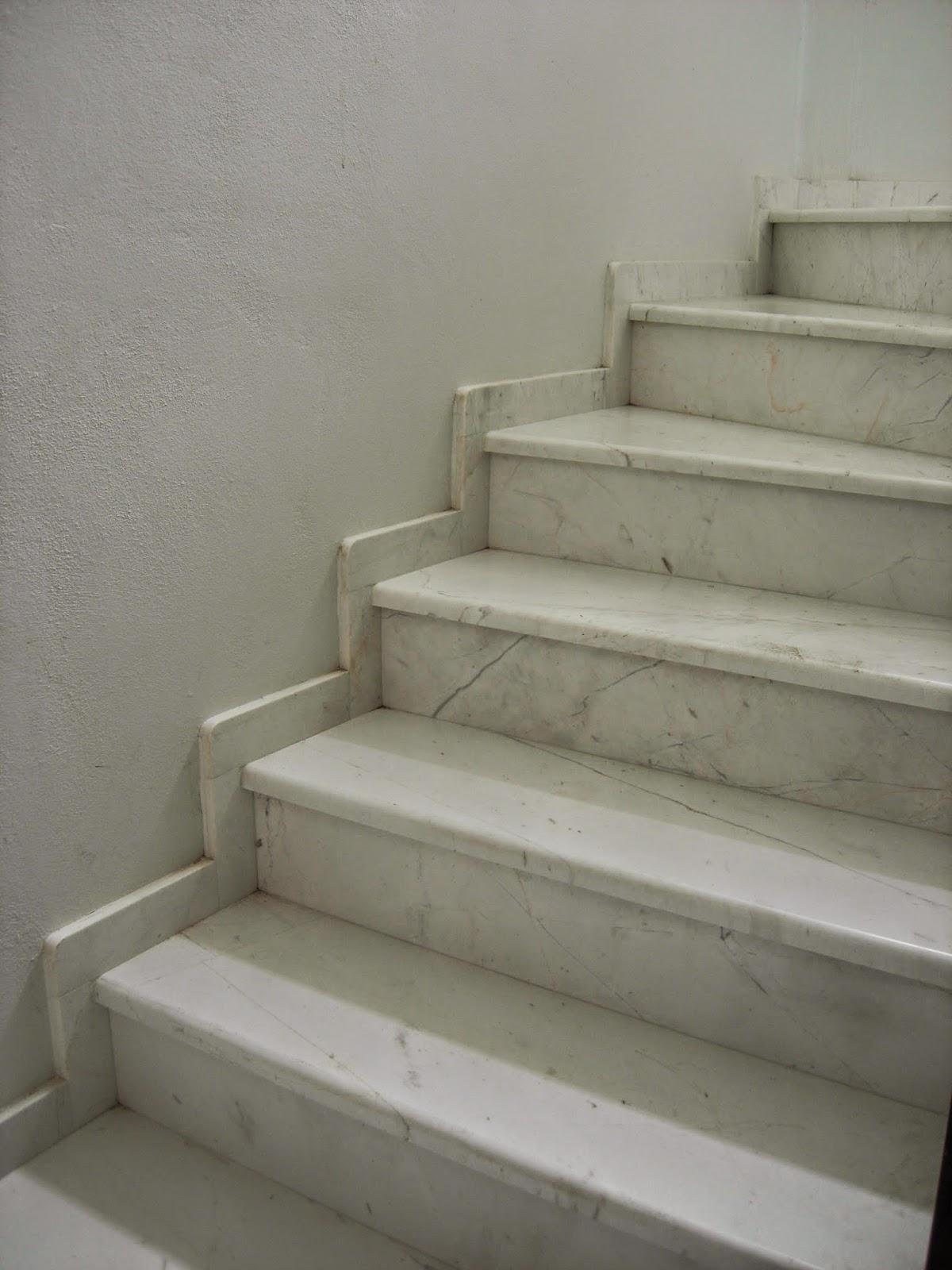 Мрамором облицованы выступающие ступени и подступенки, а также низкие плинтуса по стене. Планируется также доработка лестничной тетивы с ее отделкой тем же сортом камня.