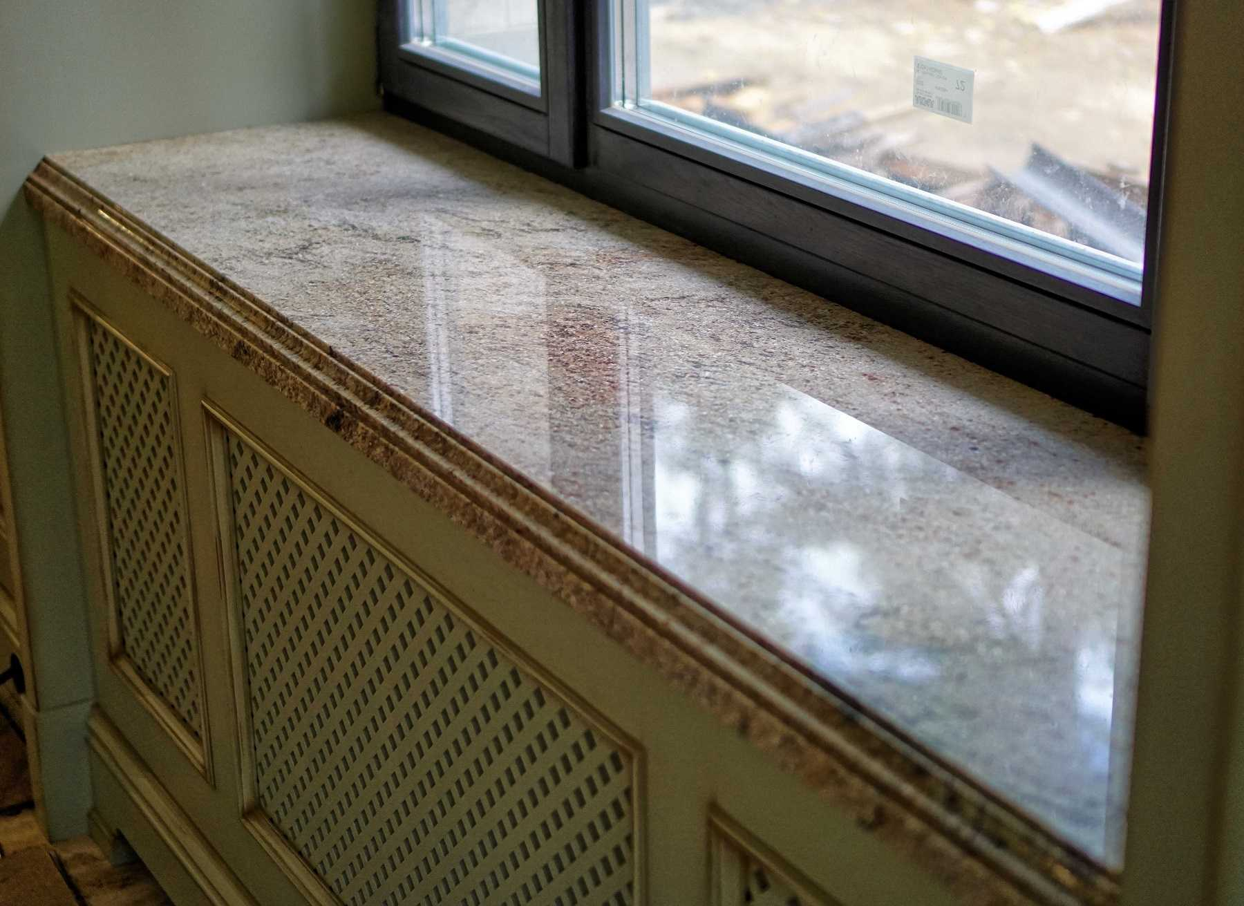 Изготовление и монтаж подоконников из Индийского бежевого гранита Crema Valentino для частного заказчика из Санкт-Петербурга.