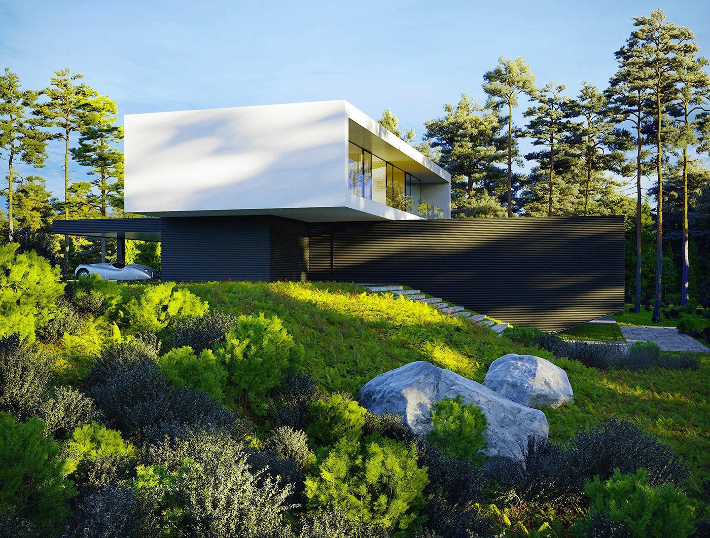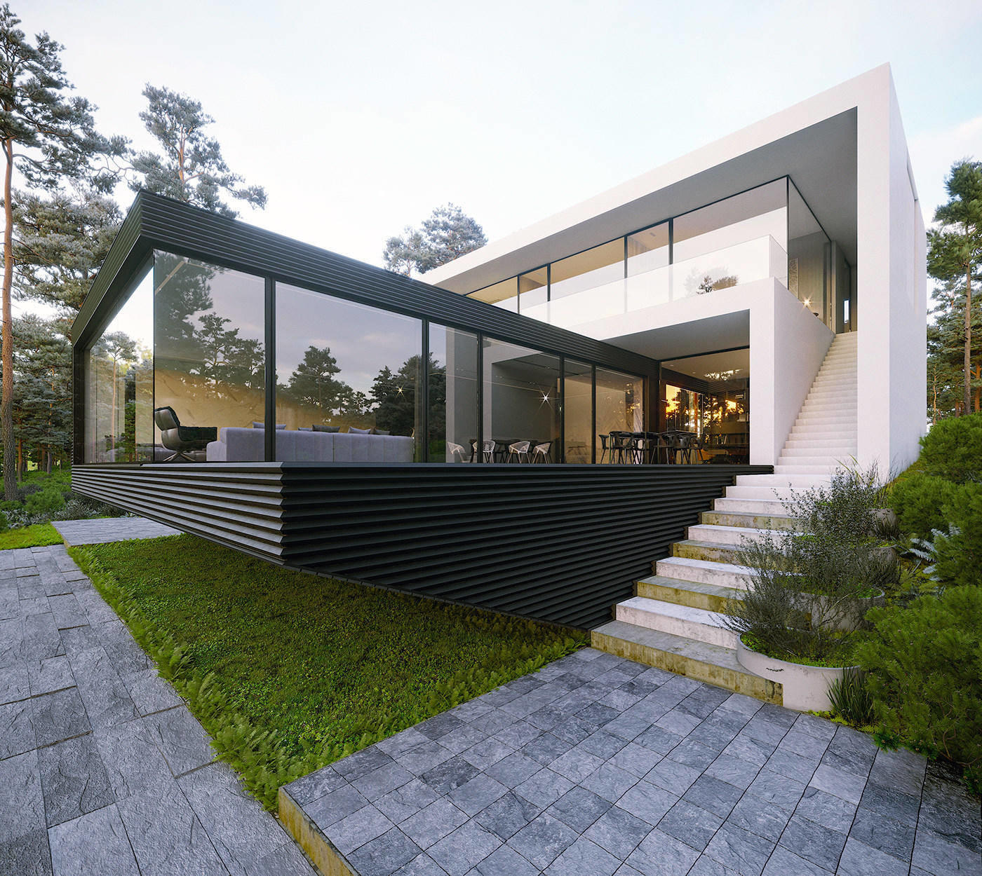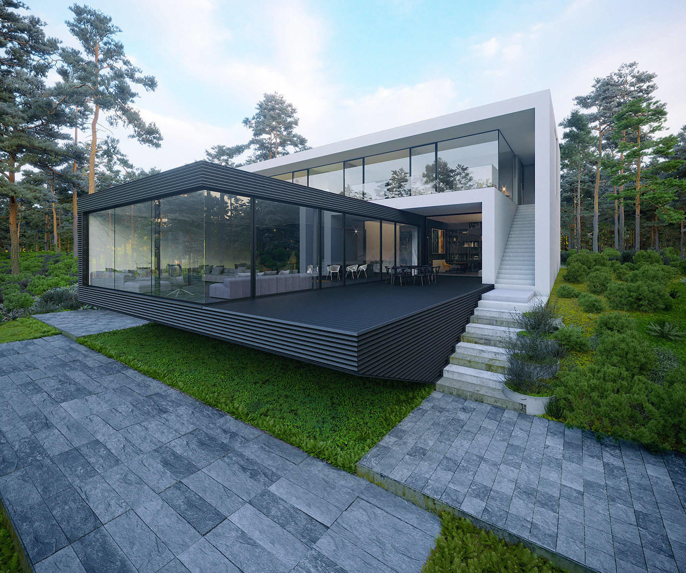 Автор проекта — Александр Жидков перенес ключевые тенденции дизайна на российскую почву. Это касается и архитектуры этой загородной резиденции, и ландшафтного благоустройства вокруг нее.