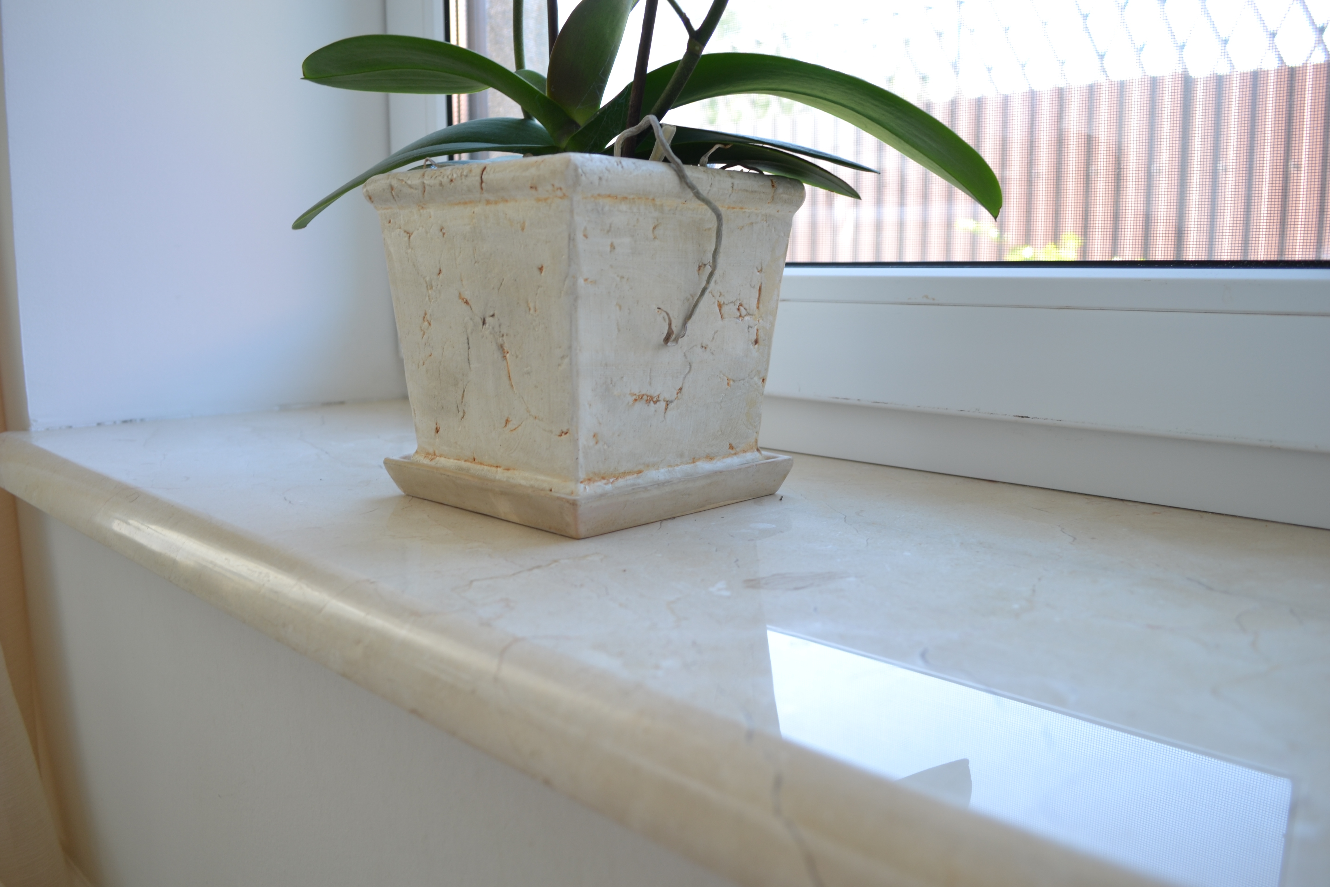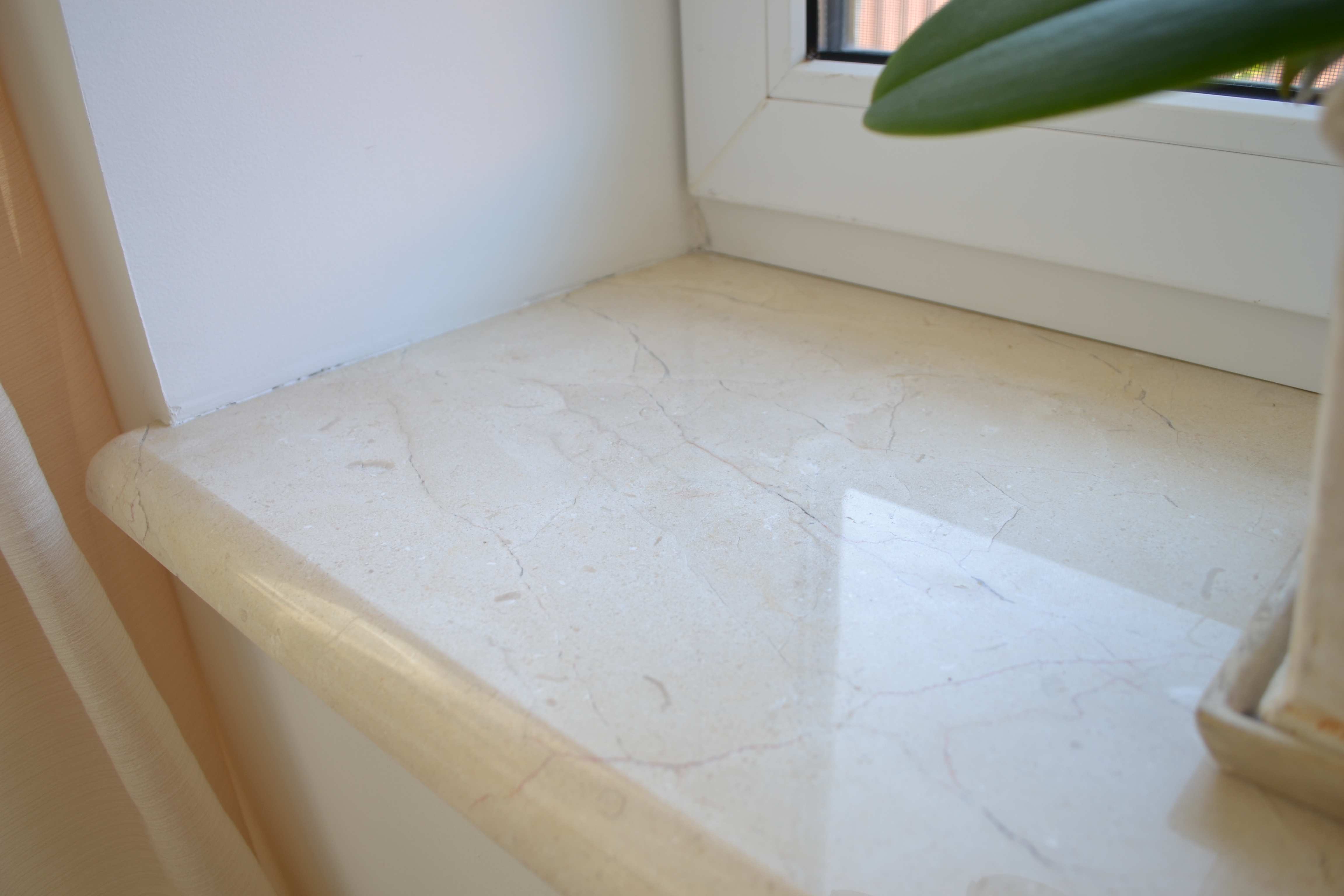 Все подоконники первого этажа представляют собой полированный мрамор Crema Marfil. Этот легендарный испанский камень особенно востребован среди ценителей классических интерьерных решений. Нежно-бежевый оттенок и легкие, едва заметные прожилки и включения.. Элегантный и нежный, Crema Marfil органичен в любом интерьере. Он привлекателен, но не претендует на главенство в декоре.