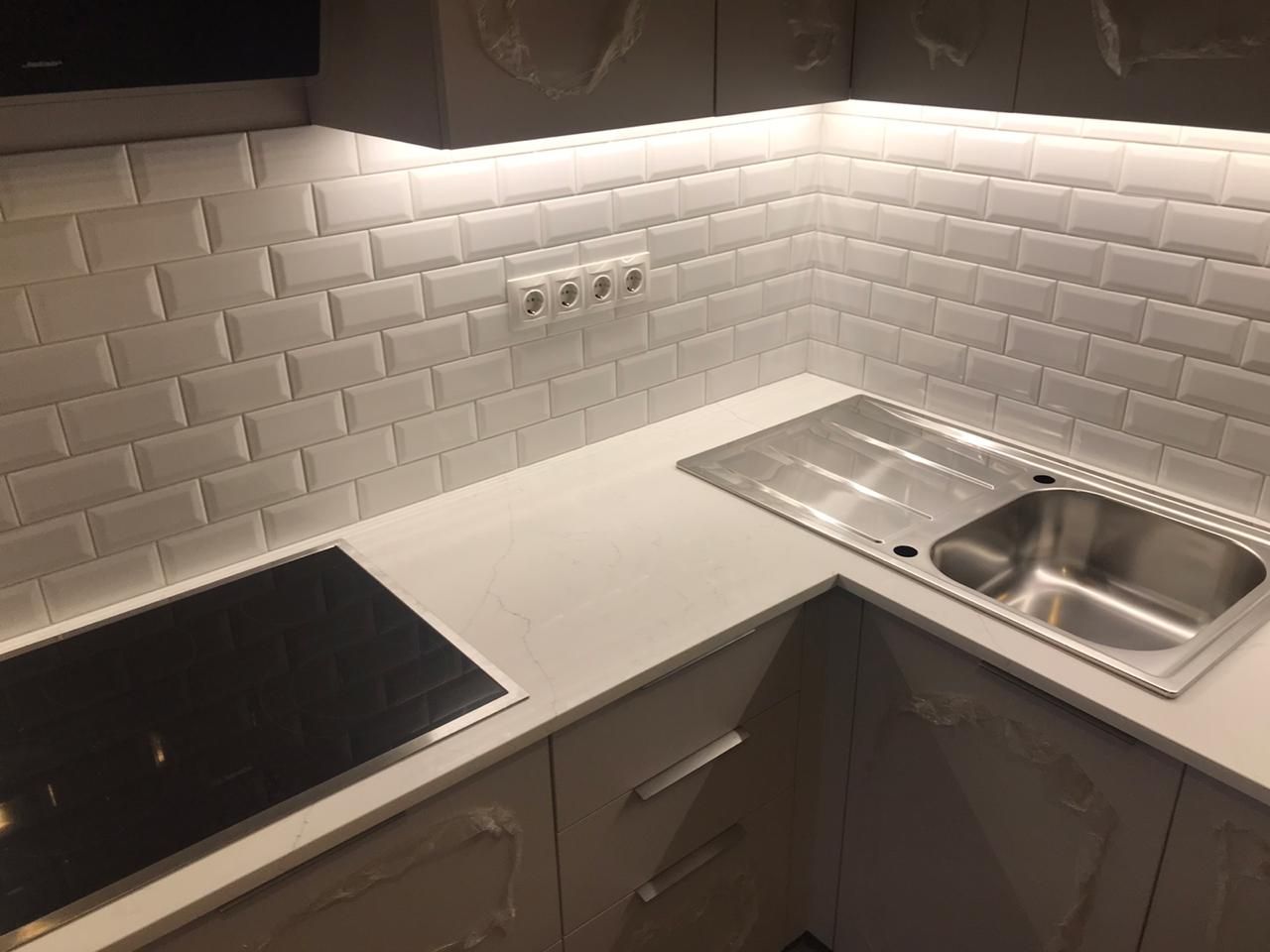 Изготовление и монтаж двух подоконников и угловой столешниц из белого кварцевого агломерата Perlino. Не стандартный для нас проект, т.к. до этого мы всегда работали только с натуральным камнем. Однако клиент очень хотел именно этот агломерат, ну а для нас пожелания клиентов это самое важное.