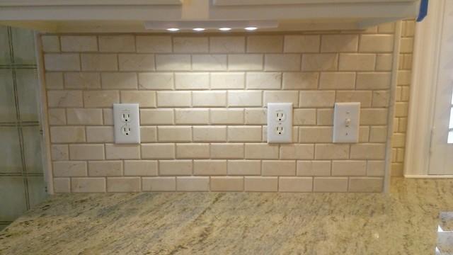 Кухонный фартук также смотрится очень привлекательно: он сложен "кирпичной" кладкой полированных плиток мрамора Crema Marfil. Мягкий кремовый оттенок камня привносит элегантный и уютный свет в общее пространство.