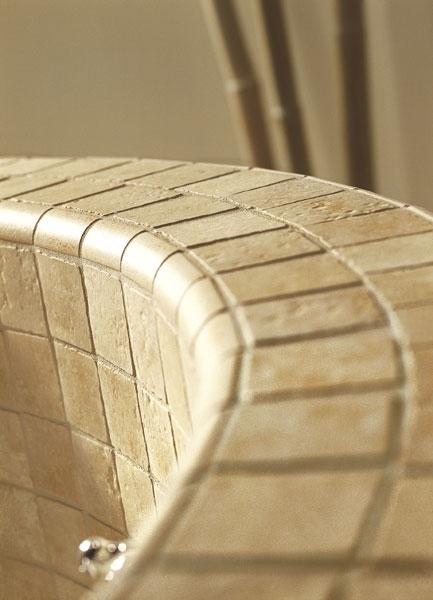 В проекте решено было использовать травертин с обработкой Антик - камень искусно состаренный, с выраженной пористостью и истертостью. В отделке удачно совмещены квадратные плитки разных габаритов - маленькие и большие.