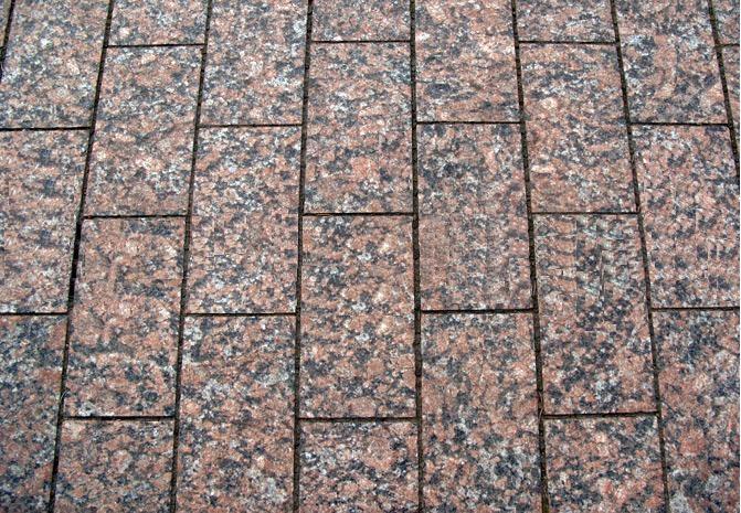 Мощение выполнено из шлифованного гранита Кашина Гора. Этот вид обработки поверхности делает камень менее травмоопасным в зимние холода.